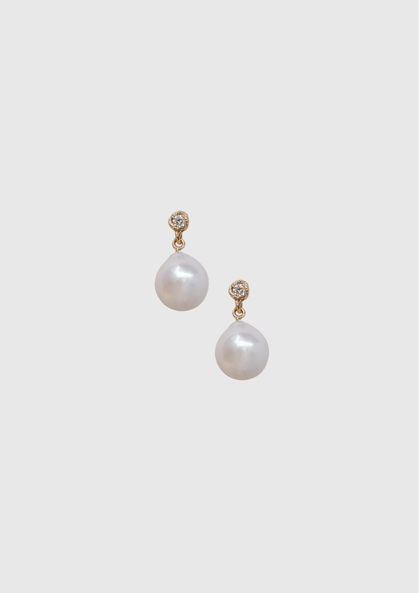 Erato Pearl Earrings translate the same harmony of movement into delicate studs with complementary pearls. Two 0.08 ct diamonds are held in the signature three-prong setting with a hanging pearl. The result is a pair of earrings that are as sculptural as they are luminous.